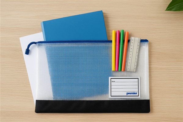 The Premier A3 Mesh Pouch with Note Card Holder is a durable, multi-purpose storage solution perfect for school, office, and home organisation. Made from strong PP mesh material with a reinforced nylon bottom, this pouch is built to withstand daily wear and tear. Its spacious A3 size offers ample room for books, stationery, documents, art supplies, or even travel essentials. The secure zip closure keeps everything safe, while the front name/ID card holder makes it ideal for students and professionals who need easy identification. A must-have item on every Back-to-School Book List.