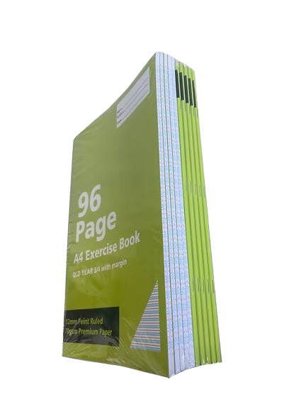 A4 70gsm Exercise Book 96 Pages | 12mm Ruled with Margin | QLD Year 3 & 4 School Notebook (Buy in Multiples of 12)