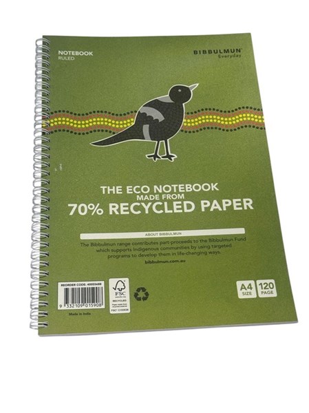 Bibbulmun Everyday A4 Wiro-Bound Notebook 120 page– 70% Recycled Ruled Paper