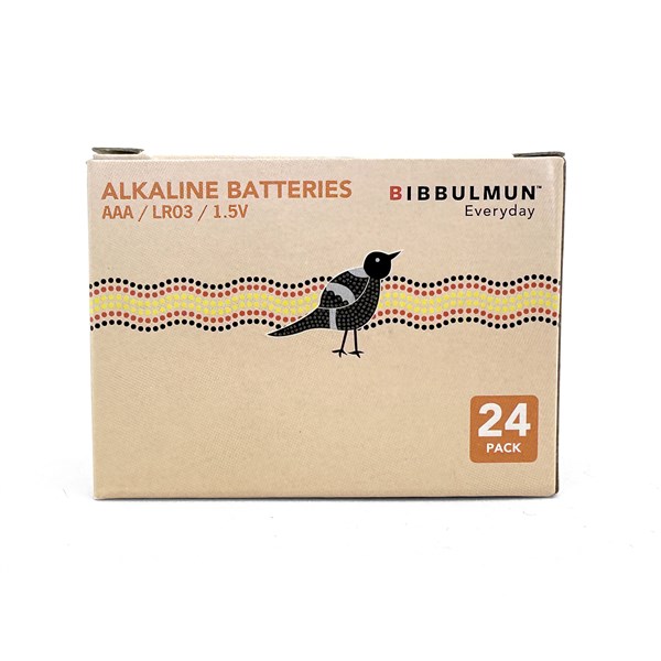 Bibbulmun Everyday AAA Alkaline Batteries – 24 Pack Power your everyday devices with Bibbulmun Everyday AAA Batteries – the reliable and eco-conscious choice for consistent performance. Designed with a stylish Indigenous-inspired print, these alkaline batteries are perfect for remote controls, clocks, wireless mouse, toys, torches, and more. The 24-pack offers long-lasting power at great value, making it ideal for homes, offices, and schools. Engineered for low leakage and long shelf life, Bibbulmun batteries deliver trusted performance when you need it most. The Bibbulmun range contributes part-proceeds to the Bibbulmun Fund and is identified by the distinctive magpie icon. The Bibbulmun Fund invests in targeted community projects that are run by community members and have support from local leaders. It encourages, supports and inspires Indigenous communities across Australia.