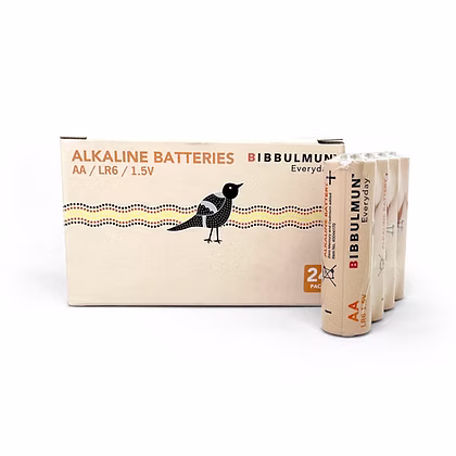 Power your everyday devices with reliable performance using Bibbulmun Everyday AA Alkaline Batteries. Designed for consistent and long-lasting energy, these 1.5V AA batteries are ideal for use in remotes, clocks, cameras, flashlights, toys, wireless mice, and more. Featuring beautiful and unique Aboriginal-inspired packaging, they combine dependable utility with thoughtful design. These batteries are mercury and cadmium-free, ensuring environmental safety while delivering strong power output. With a long shelf life and dependable leak protection, Bibbulmun batteries are perfect for bulk storage or regular household use. The Bibbulmun range contributes part-proceeds to the Bibbulmun Fund and is identified by the distinctive magpie icon. The Bibbulmun Fund invests in targeted community projects that are run by community members and have support from local leaders. It encourages, supports and inspires Indigenous communities across Australia