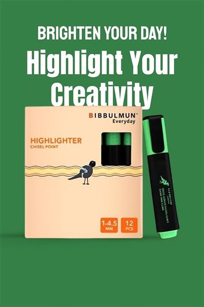 BIBBULMUN Everyday Highlighter – Chisel Point (Green, Pack of 12)