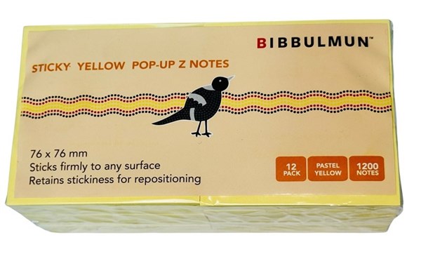 Bibbulmun Pop-Up Z Line Sticky Notes 76mm x 76mm – Pastel Yellow, 12 Pack (1200 Notes) Stay on top of your tasks with Bibbulmun Pop-Up Z Line Sticky Notes. Designed for quick and easy dispensing, these notes pop up one at a time, keeping you organised without missing a beat. Each note measures 76mm x 76mm and comes in a soft pastel yellow shade, perfect for clear visibility without being harsh on the eyes. With 12 pads per pack and a total of 1200 notes, these sticky notes are ideal for meetings, reminders, and daily planning. The strong adhesive ensures they stick firmly to surfaces while allowing repositioning without leaving residue. The Bibbulmun range contributes part-proceeds to the Bibbulmun Fund and is identified by the distinctive magpie icon. The Bibbulmun Fund invests in targeted community projects that are run by community members and have support from local leaders. It encourages, supports and inspires Indigenous communities across Australia.
