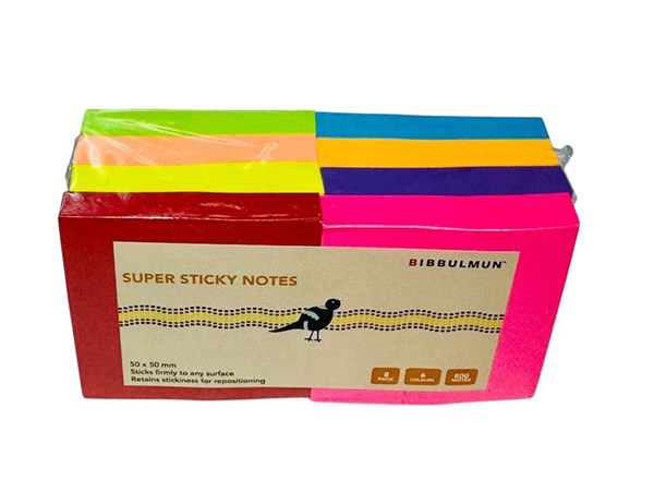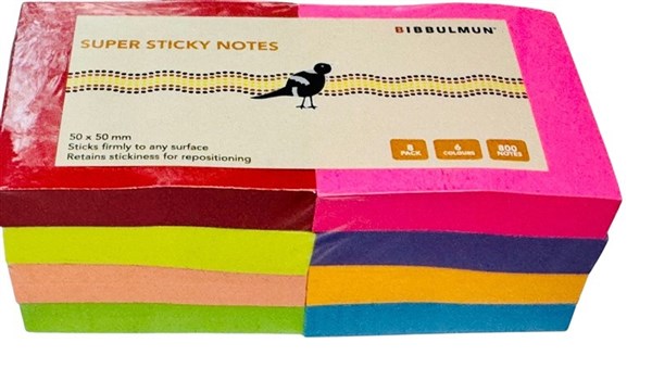 Bibbulmun Super Sticky Notes – 50mm x 50mm, Pack of 8 Assorted Colours