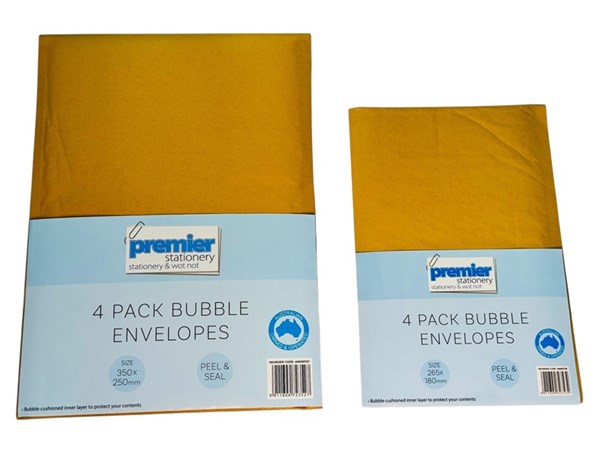 Premier Stationery – 4 Pack Bubble Envelopes (265mm x 180mm, Peel & Seal) Durable, Lightweight Mailing Protection for Everyday Use Send your important items securely and confidently with the Premier Stationery Bubble Envelopes. This 4-pack features medium-sized envelopes, each measuring 265mm x 180mm, making them ideal for shipping books, accessories, documents, electronics, and other delicate items. Crafted with a durable kraft paper exterior and protective bubble lining, these mailers ensure your contents are cushioned against bumps, pressure, and handling during transit. Whether you're running a business or posting personal items, these envelopes are a perfect choice for everyday shipping. Ideal For: Mailing books, brochures, and small documents Shipping electronic accessories or devices Protecting fragile or valuable items Online sellers and small businesses Office and personal use