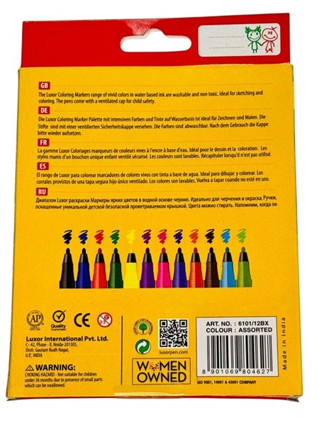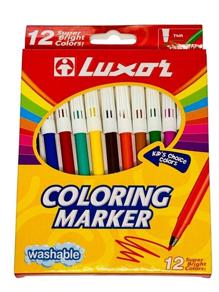 Luxor Colouring Markers – 12 Colours Washable Marker Set