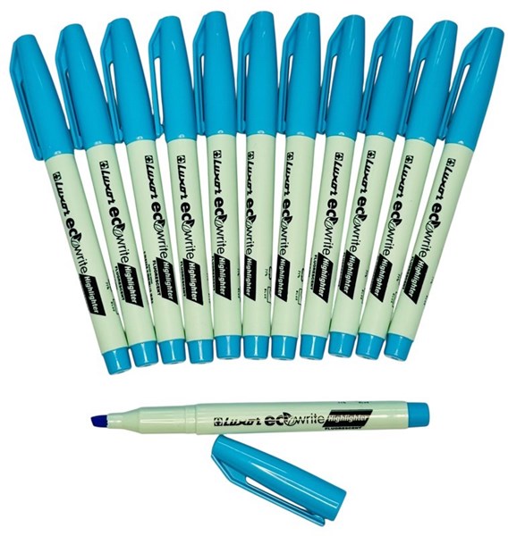 Luxor EcoWrite Blue Highlighters – Chisel Tip | 71% Recycled | Fluorescent Blue Ink – Box of 12 Eco-Friendly Markers