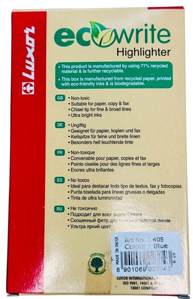 Luxor EcoWrite Blue Highlighters – Chisel Tip