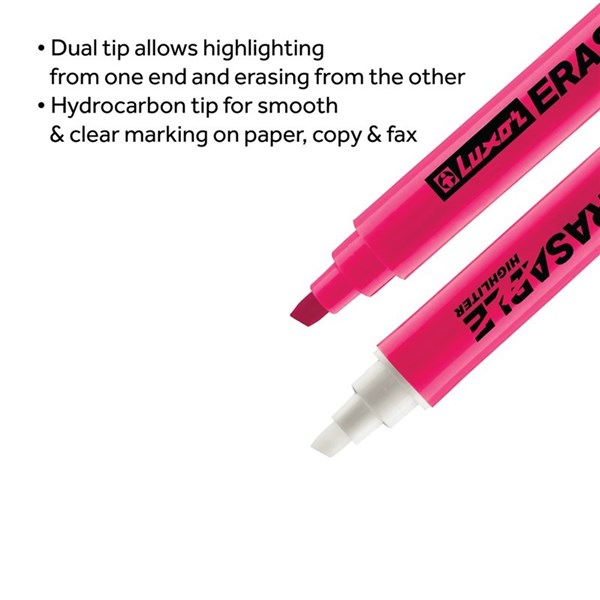 Luxor Erasable Highlighter – Dual Tip | Fluorescent Ink | Chisel Tip with Eraser