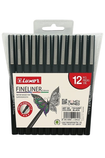 Luxor Fineliner 0.4mm Black – Pack of 12