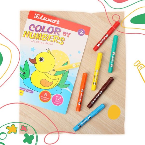 Unleash your child's creativity with the Luxor Color By Number Set – a fun-filled and educational coloring experience designed for kids aged 3 and above. This pack includes 12 sets, each with a vibrant Color By Numbers book and 6 broadline markers in super bright shades. Perfect for home, school, or as a gift, this kit enhances color recognition, fine motor skills, and number familiarity through play-based learning.