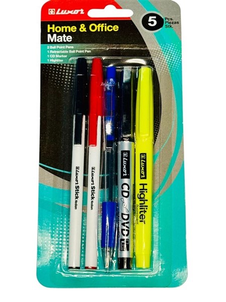 Luxor Home & Office Mate Pack of 5 – Pens, Marker & Highlighter