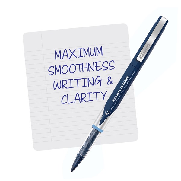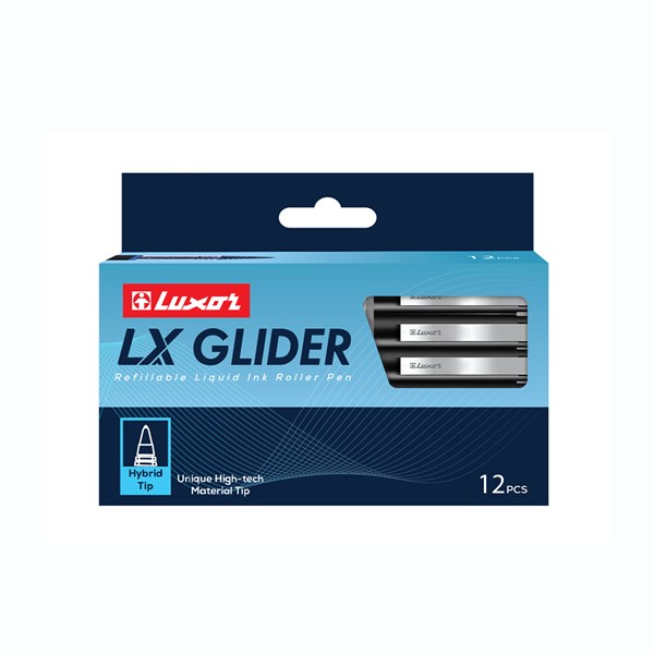 The Luxor LX Glider Refillable Liquid Ink Roller Pen is designed for those who value precision, smooth flow, and reliability. Featuring advanced German ink technology, it delivers consistent, waterproof lines that dry quickly without smudging. The hybrid high-tech material tip ensures a seamless writing experience — perfect for professionals, students, and daily office use. Each pen is refillable, offering long-lasting value and reduced plastic waste. With its elegant design and ergonomic grip, the LX Glider combines style and functionality, making writing a truly effortless experience.