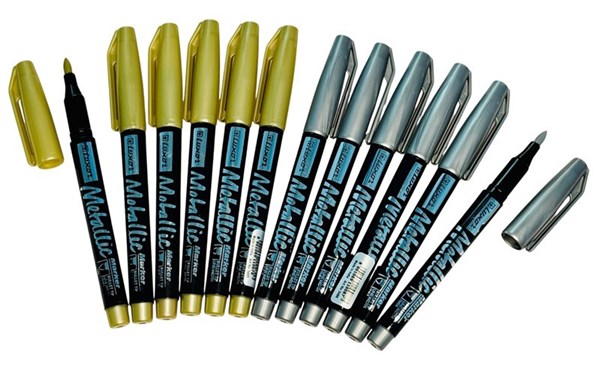 Pack of 12 Metallic Markers – Combination of Gold & Silver colors