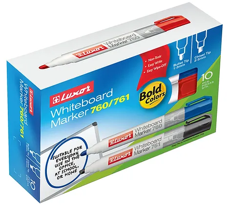 Bring clarity and vibrancy to every presentation with the Luxor White Board Marker 760 – Green Bullet Point. Designed for smooth and effortless writing, this marker produces bold, bright green lines that stand out clearly on whiteboards and other non-porous surfaces. The quick-dry, low-odor and non-toxic ink makes it safe and comfortable to use in classrooms, offices and training rooms. Its precision bullet tip delivers consistent writing strokes without smudging or skipping, and wipes off cleanly without leaving ghost marks. Ideal for teachers, students, office professionals and corporate trainers, the Luxor 760 is available to buy in multiples of 12, making it perfect for bulk institutional purchases.