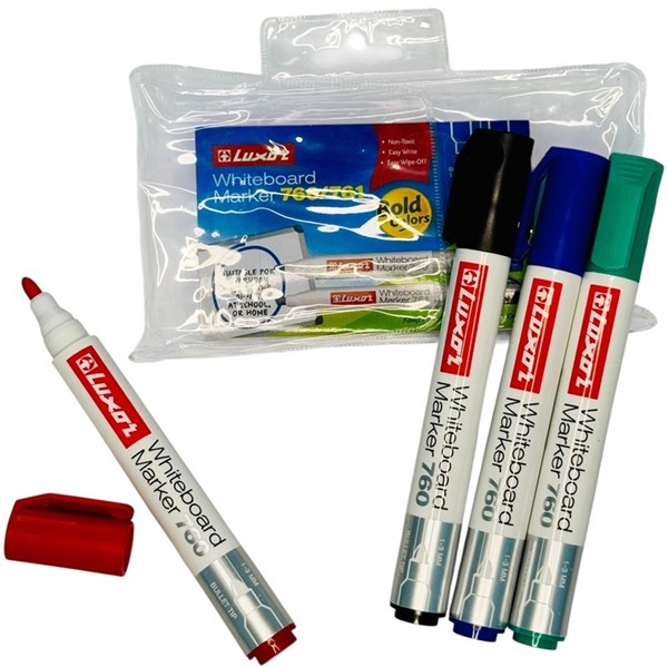 Luxor Whiteboard Marker 760, Assorted Colours, Bullet Point – Wallet of 4 (Buy in Multiples of 12 Wallets)