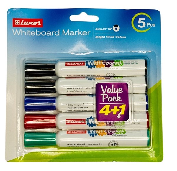 Luxor Whiteboard Marker Pen Set – Pack of 5 (4+1 Value Pack)