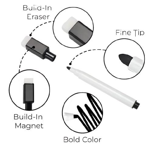 Magnetic Black Whiteboard Markers – Pack of 5 with Eraser Tip & Magnetic Cap