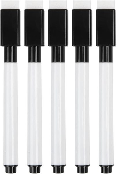 Stay organised and keep your ideas flowing with this premium Pack of 5 Magnetic Black Whiteboard Markers. Each marker is equipped with a built-in magnetic cap that sticks securely to any magnetic whiteboard surface, ensuring you never misplace your pen again. The cap also features a convenient eraser tip for quick corrections without needing a separate duster. Perfect for classrooms, offices, meeting rooms, and home use, these markers provide smooth, bold, and consistent black ink that’s easy to wipe off without leaving stains. The lightweight design and comfortable grip make them ideal for everyday writing and drawing tasks.