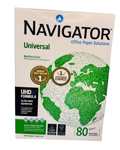 Experience superior quality and unmatched reliability with Navigator Universal A4 80gsm Copy Paper. Engineered with advanced UHD Formula (Ultra High Definition) technology, this premium white paper delivers exceptional results for all your printing needs—whether you're in the office, classroom, or at home. With a brilliant 170 CIE whiteness and 99.99% jam-free performance, every sheet provides a smooth, consistent surface for sharp text and vibrant image reproduction. Sustainably produced and FSC® certified, this paper is not only ideal for high-speed printing and copying but also environmentally responsible. Sold in multiples of 5 reams, it is the ultimate choice for those who demand high productivity and professional-grade quality in every print job.