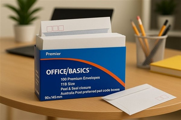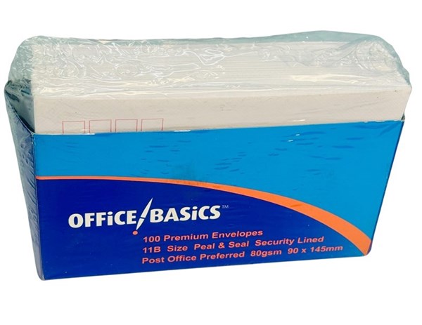 Premier 11B Size Security Envelopes – Pack of 100 | 80 GSM | Peel & Seal Make your everyday mailing secure and efficient with Premier Office Basics 11B Envelopes. Designed for consistent performance and trusted by professionals, these premium-quality envelopes are ideal for sending cheques, forms, invoices, or confidential correspondence. Measuring 90mm x 145mm, each envelope is crafted from durable 80 GSM paper and features a Peel & Seal closure for quick, moisture-free sealing. The interior is security printed to protect sensitive contents, while the printed Australia Post preferred postcode boxes ensure compliance and processing convenience. Whether for home, school, or office, this pack of 100 envelopes delivers reliability and peace of mind with every use.