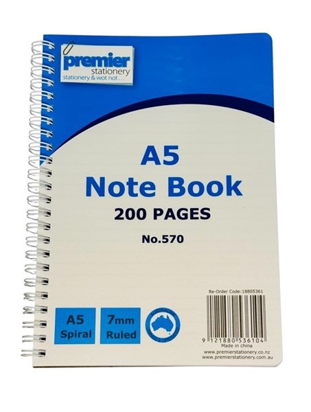 Premier Stationery A5 Spiral Notebook — 200 Pages, 7mm Ruled, PP Cover Stay productive and stay organised with the Premier Stationery A5 Spiral Notebook — designed for those who value functionality, durability, and sleek design. This compact yet spacious notebook features 200 7mm-ruled pages, perfect for jotting down lecture notes, meeting minutes, or creative writing. The polypropylene (PP) cover adds water resistance and resilience, making it an ideal choice for students and professionals alike. Its twin-wire spiral binding ensures smooth page turns and allows the notebook to lie flat. Whether you’re at school, the office, or planning remotely, this notebook helps you work smart, sustainably, and in style.