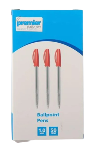 Premier Ballpoint Pens Red – 1.0mm Tip | Box of 50 Pens | Great Value & Super Quality (Buy in Multiples of 6) Premier Ballpoint Pens in red ink are perfect for marking, editing, and everyday writing. With a 1.0mm medium point tip, they deliver smooth, consistent ink flow for clear and precise results. Each box contains 50 pens, making them ideal for bulk use in schools, offices, or at home. Durable, reliable, and comfortable to use, these pens combine quality with great value.