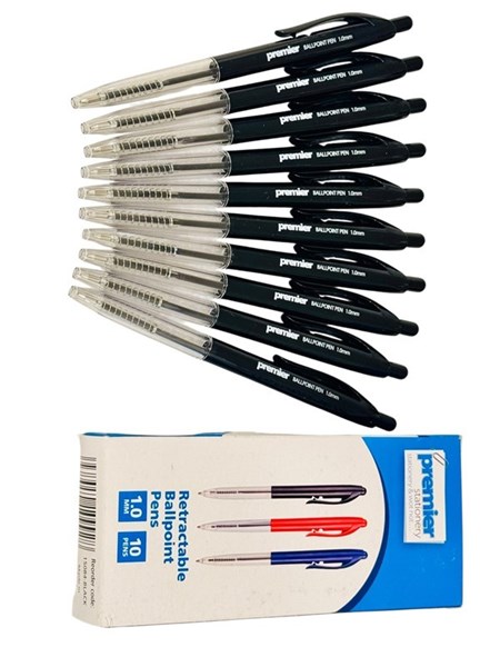 Premier Click Retractable Ballpoint Pen – Black – 1.0 mm (Pack of 10)