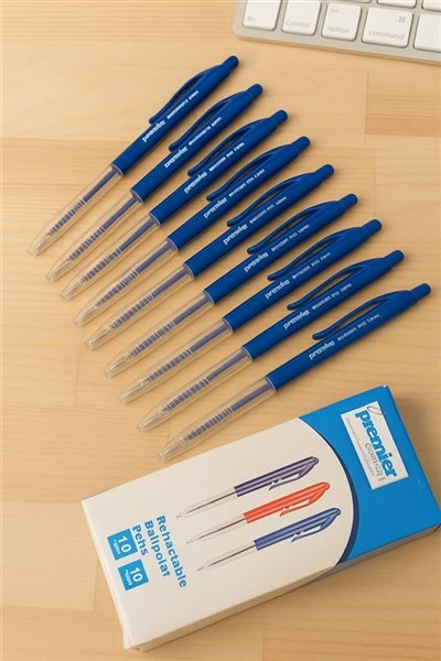 Premier Clic Retractable Ballpoint Pen Blue – 1.0 mm Medium Tip | Pack of 10 Pens