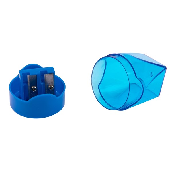 Premier Double Hole Sharpener with durable plastic barrel. Suitable for standard and jumbo pencils. Safe, mess-free, and perfect for school or office use.
