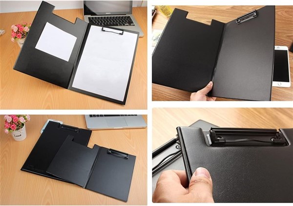 Generous Foolscap (FC) Size: Accommodates larger documents and files with ease. Double-Sided Design: Handy internal pocket for storing extra papers securely. Strong Flat Clip: Keeps pages firmly in place while writing or carrying. Hanging Hook: Easy to store on walls or hooks when not in use. Durable PVC Cover: Protects documents from bending, spills, or wear. Professional Look: Sleek black finish ideal for business, school, or field use.