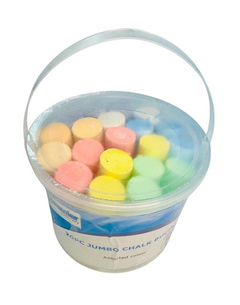 20 Jumbo Chalks in assorted bright colours for endless creativity Durable Bucket Packaging with handle for easy portability and storage Smooth & Dust-Reduced Texture for easy writing and less mess Kid-Safe & Washable – perfect for pavement, blackboards, and play areas Great for schools, home learning, art & craft activities, and outdoor games Sold in multiples of 12 – ideal for bulk purchases and classroom supplies Tub 20 Assorter Jumbo Chalks