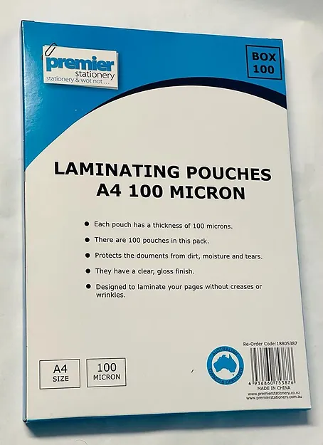 Premier Laminating Pouches A4 100 Micron - 100 Sheets/pack ( Buy in Multiples of 10 )