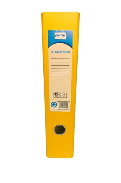 Premier Lever Arch File – FC Size, 75mm Spine, Yellow