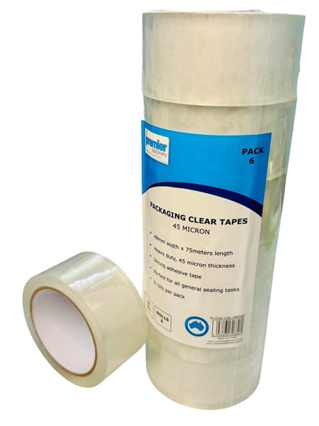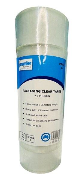 Premier Packaging Clear Tape – 48mm x 75m, 45 Micron, Heavy Duty Adhesive – 6 Roll Tower Pack