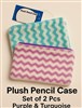 Set of 2 Plush Pencil Cases – Includes 1 Turquoise and 1 Purple case.