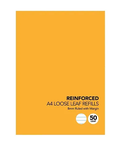 A Reinforced A4 Loose Leaf Refill refers to loosened sheets of paper with specific characteristics suitable for insertion into a binder or folder. A4 size is a standard size compatible with most binders and folders, making these loose-leaf refills versatile and easy to integrate into existing organizational systems. Loose leaf refills offer flexibility in organizing notes, documents, or other materials. They can be arranged, removed, or added to a binder according to specific needs or subjects. The ruled layout with 8mm lines provides a structured writing space, aiding in neatness and organization of notes or written work. The red margin might serve as a visual aid, drawing attention to specific notes, key points, or titles on the page. The 55gsm paper weight strikes a balance between being lightweight and durable, suitable for writing with various pens or pencils without ink bleed-through. With 100 pages this refill pack offers a substantial amount of space for notes, essays, or other written work. White paper color is standard and provides a clean and clear background for writing or printing. Reinforced likely indicates that the punched holes on the side of each sheet are reinforced or strengthened, reducing the risk of tearing or damage when inserted into a binder. These loose-leaf refills are commonly used in educational settings, offices, or for personal organization. They provide a customizable and structured way to keep notes, documents, or assignments neatly organized within a binder or folder, allowing for easy removal or rearrangement as needed.