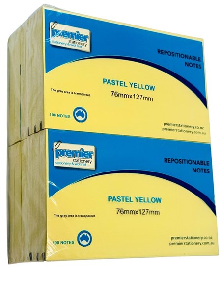 Premier Repositionable Sticky Notes – Pastel Yellow 76mm x 127mm (1200 Sheets Per Pack)