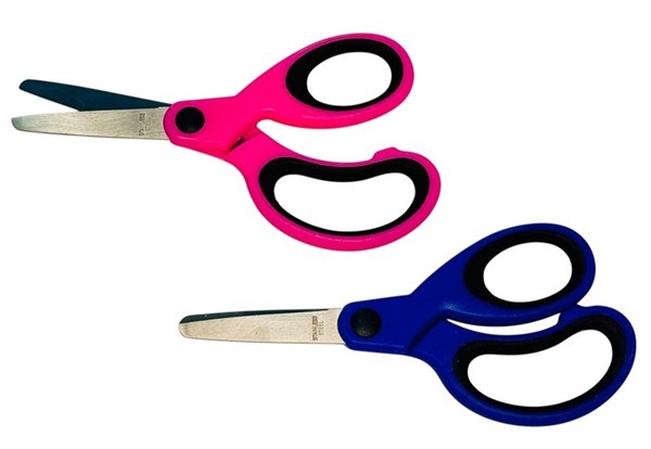 Available in Assorted Colours: Pink & Blue Make school projects safe and fun with Premier School Scissors – specially designed for young hands. These 135mm (5.3”) scissors feature soft grip, easy-hold handles and blunt rounded tips to ensure safety without compromising performance. Ideal for classroom or home use, and crafted with durable stainless steel blades for smooth cutting.