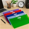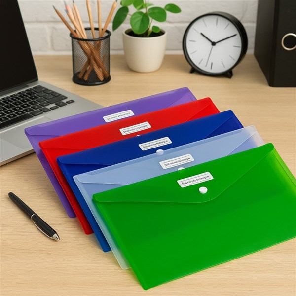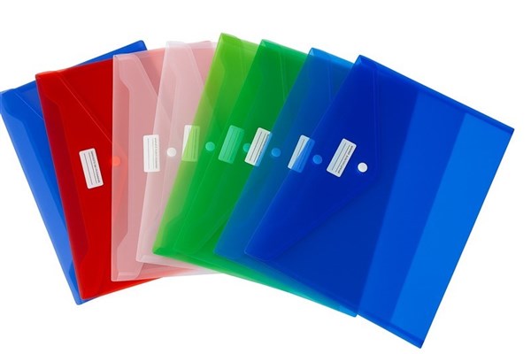Assorted Vibrant Colours – Pack of 10 contains Red, Blue, Green, Clear, and Purple( 2 Each). Secure Button Closure – Keeps documents safe and intact. Writable ID Panel – Easily label contents for quick access. Moisture Resistant – Protects paperwork from spills and damage. Spacious Capacity – Holds up to 150 A4 sheets per envelope. Eco-Friendly Material – Made from durable, recyclable polypropylene. No Gusset – Slim and lightweight for easy stacking and storage.
