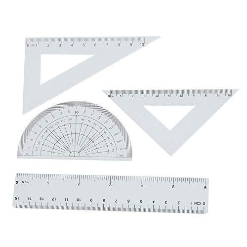 Complete 4-piece geometry set – includes ruler, protractor, and two set squares
