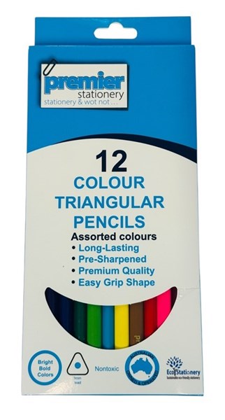 Premier Triangular Colour Pencils – Pack of 12 Assorted Colours, 3mm Lead, Break-Resistant, Eco-friendly plantation timber, (Buy in Multiples of 12)