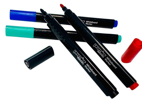 Premier Triangular Grip Whiteboard Markers - Bulk Pack 60pcs – Assorted Colours – Non-Toxic Upgrade your classroom or office with the Premier Triangular Grip Whiteboard Markers – the ultimate choice for smooth writing and easy erasing. This bulk value pack of 60 markers includes 24 black, 12 blue, 12 red, and 12 green markers, making it perfect for teachers, trainers, and professionals. Designed with an ergonomic triangular barrel, these markers provide superior comfort and control during long writing sessions. The bullet tip (1–2mm) ensures precise, bold lines, while the vivid quick-dry ink wipes clean effortlessly without leaving stains. Made with non-toxic ink and ASTM safety-approved, these markers are safe for classrooms, offices, and home use. A reliable essential for every whiteboard user.