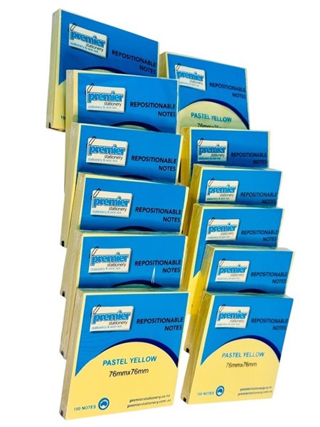 Sticky Notes Pastel Yellow 76mm x 76mm Pack 12 Bring clarity and efficiency to your daily routine with the Premier Repositionable Notes in Pastel Yellow. Designed to help you capture ideas, reminders, and important messages with ease, these premium sticky notes are an essential tool for every organized workspace—whether at home, in the office, or in a classroom. Each note measures 76mm x 76mm, offering just the right amount of space for concise and effective communication. The soft pastel yellow shade provides a subtle yet visible background, ensuring your notes stand out without overwhelming your documents or workspace aesthetics. This value pack includes 12 pads, with 100 sheets per pad, making it ideal for professionals, educators, students, or anyone who frequently needs quick access to reliable notepaper. Whether you’re organizing projects, color-coding tasks, or jotting down ideas on the go, Premier’s repositionable notes help you stay in control and on top of everything.