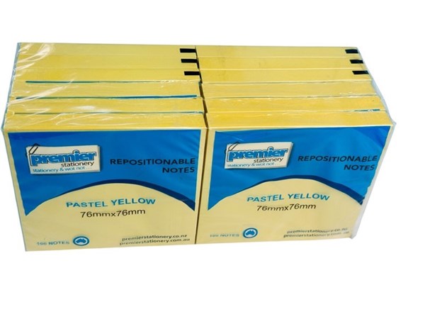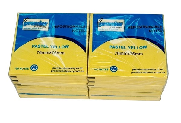 Repositionable Sticky Notes Pastel Yellow 76mm x 76mm - Pack 12 Individually Wrapped Pads