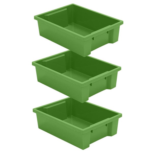 Dimensions: 70H x 290W x 395D mm Durable, high-quality plastic construction Stackable and space-efficient design Bright green colour for easy identification Suitable for classrooms, offices, homes, and workshops Easy to clean and maintain Pack of 3 for versatile use