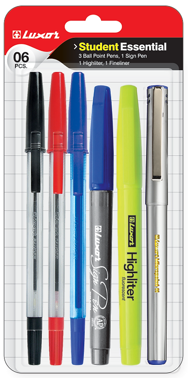 When it comes to stationery needs Luxor is the only name which pops up in the head. This student kit from Luxor is perfect for any student or office. It comes with 3 Ranger Ball Point Pens, Sign Pen Highlighter & Fineliner all neatly packaged in a blister card. This environmentally friendly kit is reliable and perfect for small offices. Get all 6 pieces for one great price. Get yours today and start the school year off right. It is an ideal tool for students of all ages, and it makes a great gift too. Also, an ideal choice for students looking for a reliable, cost effective, and eco-friendly writing instrument. The combo is the perfect addition to any student's desk. An amazing set of ballpoint pens and highlighters for smooth writing experience and provides a perfect gateway for you to take notes or write your journal on the go or for office and school use. All Luxor products are manufactured using quality assured material and advanced techniques, which make them up to the standard in this highly challenging field. The materials utilized to manufacture are sourced from the most reliable and official sources, chosen after performing detailed market surveys. Luxor products are widely acknowledged in the market for their high quality. By choosing eco-friendly stationery, you are reducing the amount of waste and pollution that is generated by the production and disposal of non-eco-friendly products.