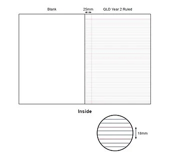 QLD Year 2 Approved Format – Ruled with red margin and blank sections for versatile use.