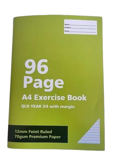A4 70gsm Exercise Book 96 Pages | 12mm Ruled with Margin | QLD Year 3 & 4 School Notebook (Buy in Multiples of 12)