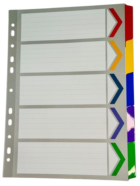 Bibbulmun A4 Plastic Reinforced Tab Dividers – 5 Coloured Tabs – White Index Sheets